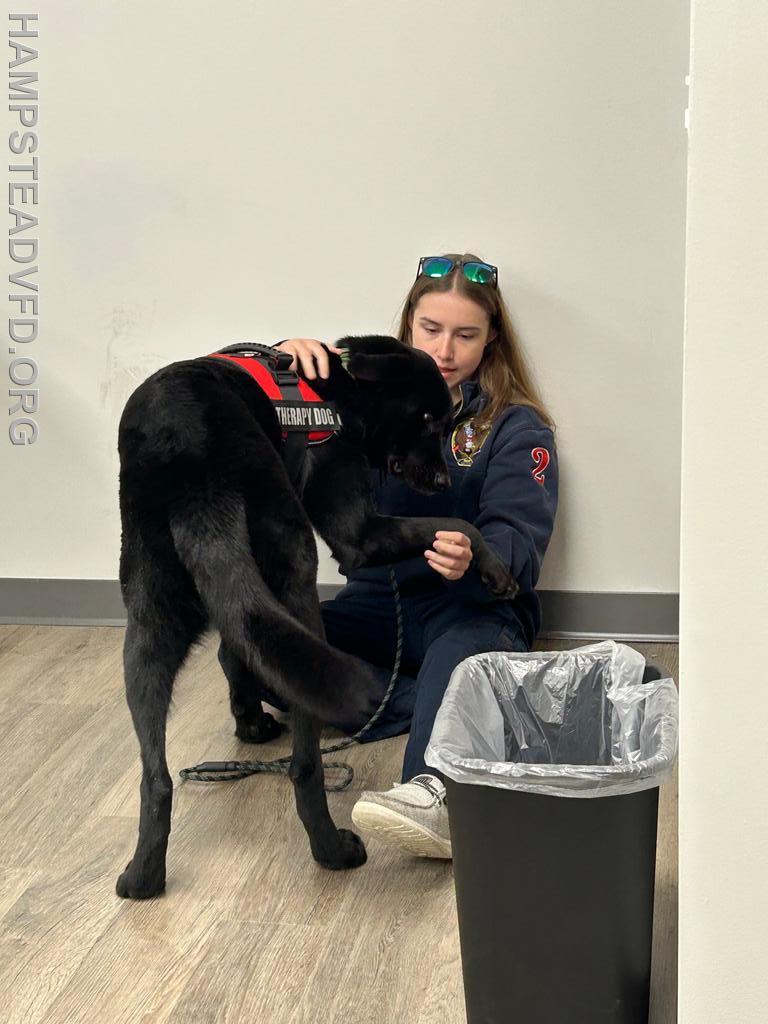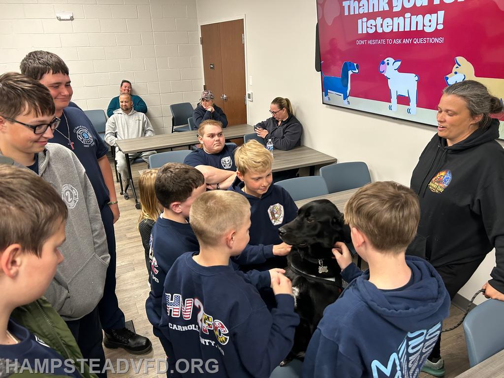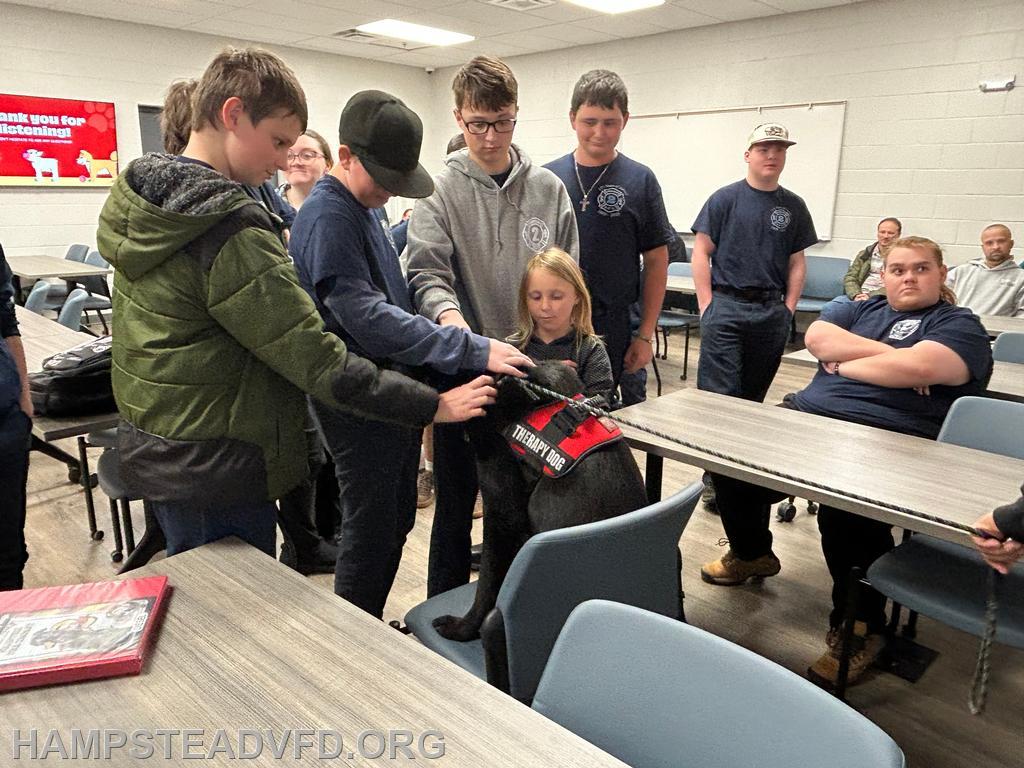| This evening, HVFC had the pleasure of hosting special guests K-9 Diesel and his handler, Christina, from the Mt. Airy Volunteer Fire Department and the Go Team Therapy Dogs of Frederick County.