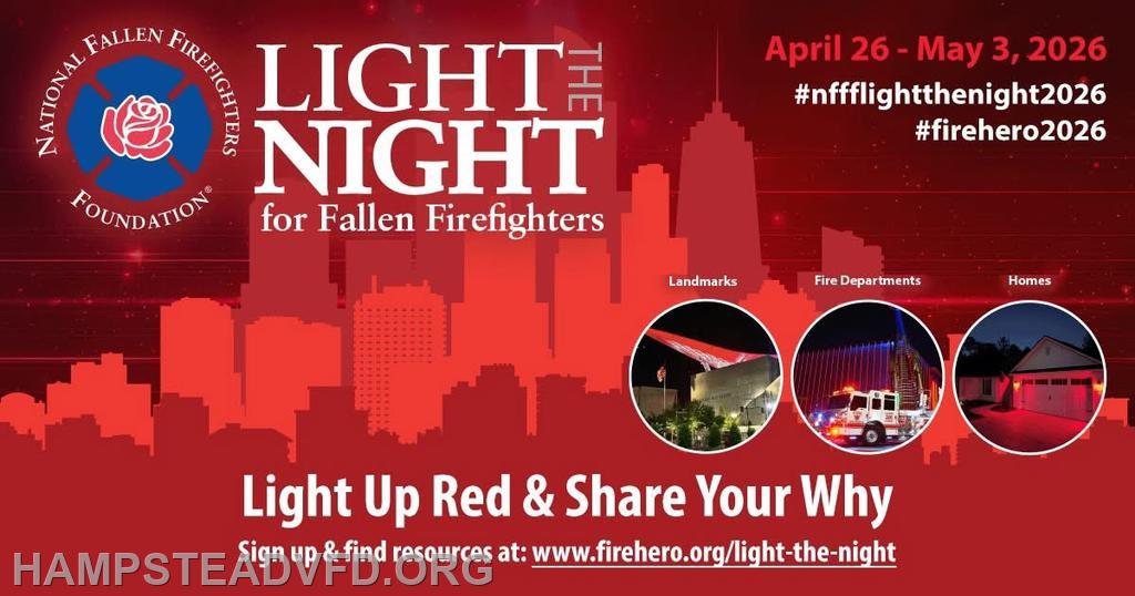 As part of this nationwide tribute, residents, businesses, and fire departments are encouraged to “light the night” in red anytime between April 26 – May 3, 2026. This simple but powerful gesture serves as a visible reminder of the sacrifices made by our nation’s firefighters and their families.